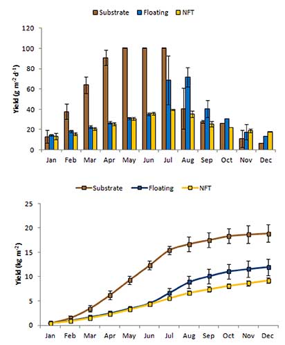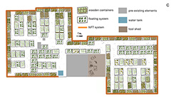 Sui tetti, gli ortolani coltivano frutta e ortaggi all’interno di tubi di plastica, o in contenitori realizzati a partire da pallet riciclati e riempiti con substrato o in contenitori di polistirolo galleggianti su una soluzione di acqua e nutrienti. Il sistema di coltivazione su substrato ha consentito di ottenere le produzioni migliori, un terzo superiori a quelle avute nei pannelli galleggianti e più del doppio rispetto alla coltivazione nei tubi, anche se le resa era fortemente legata a stagionalità e sistema produttivo. Sulla base dei risultati sperimentali, i ricercatori hanno disegnato un sistema produttivo da realizzare nei 216 m2 di terrazzo che combina gli elementi di ciascun sistema al fine di massimizzare la produzione annua e consentendo di ottenere più di tre tonnellate di ortaggi all’anno.