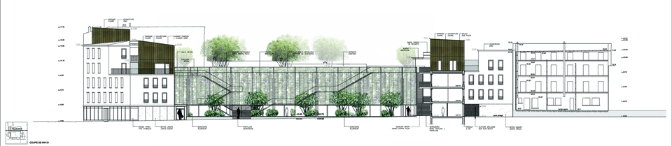This garden offers its users and all local residents a quiet and green space as well as an exceptional view of Paris. In this particularly dense neighbourhood, the rooftop of a new building has permitted the creation of a multifunctional and, to date, unique space in the capital. The Biodiversity Plan of the City of Paris, introduced in 2011, calls for the creation of at least 15 similar rooftop gardens by 2020.