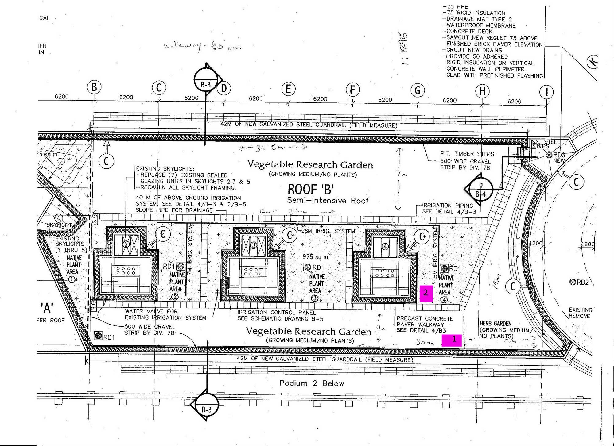 In 1994, Trent’s Environmental Science Complex was built to accommodate the original garden on an 830 m2 roof. The structure was designed to accommodate the additional weight of 1450 mm of soil and the necessary drainage for plants. In 2009 the first roof was completely replaced, and the garden renewed. This green roof continues to provide temperature moderation for the spaces below, reducing cooling loads in the summer and serving as an insulator in winter.