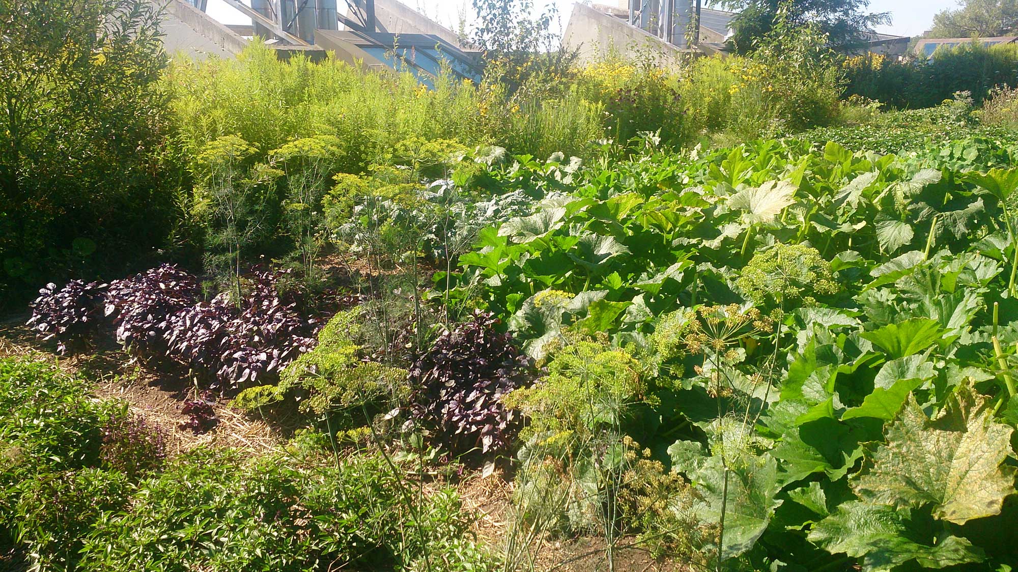 Le jardin a d’abord été utilisé à des fins de recherche par le Dr. Tom Hutchinson. Les élèves l’ont également utilisé pour mesurer la productivité de l’agriculture sur les toits, comparant ses rendements à ceux obtenus dans des terres agricoles. Plus récemment, le jardin est devenu un espace d’apprentissage pour les élèves du secondaire suivant le programme de spécialisation en alimentation et agriculture. Le jardin est financé par une taxe que les étudiants payent à l’université. Il est géré par un comité d’étudiants qui recrute les jardiniers bénévoles, choisit les plantes et distribue les produits. Une grande partie des produits revient au Café Seasoned Spoon, une coopérative indépendante gérée par les étudiants sur le campus universitaire. Les cultures comprennent notamment du maïs, des haricots et des courges qui poussent ensemble pour fournir à chaque espèce des conditions optimales de croissance.