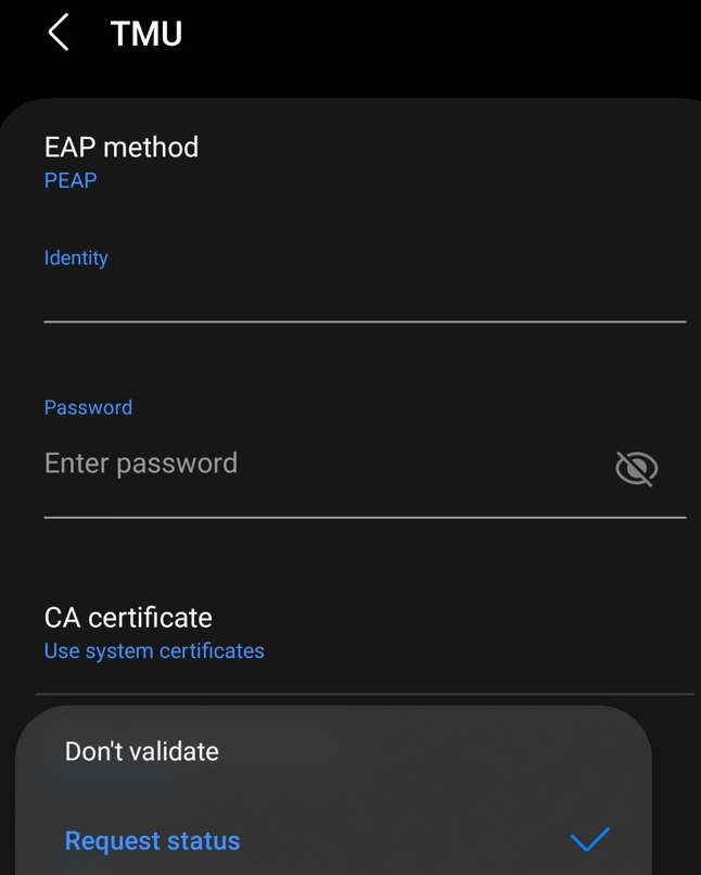 Your device should now be connected to the TMU wireless network