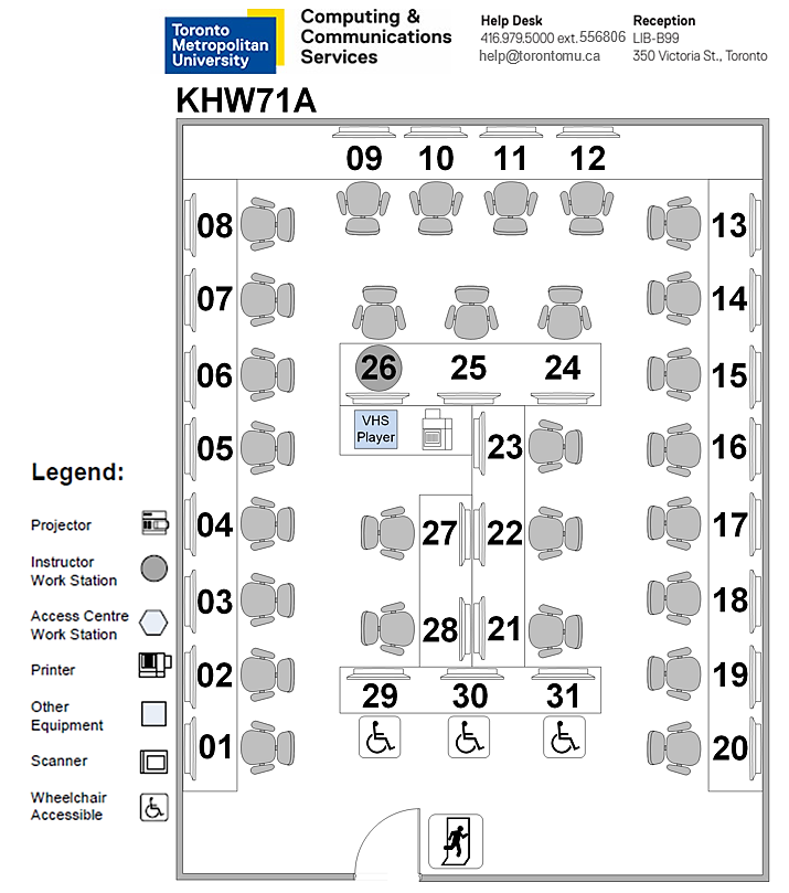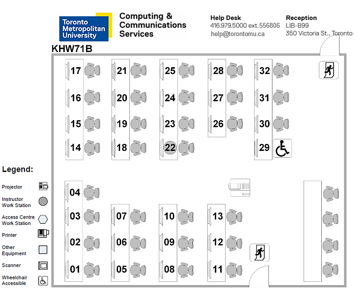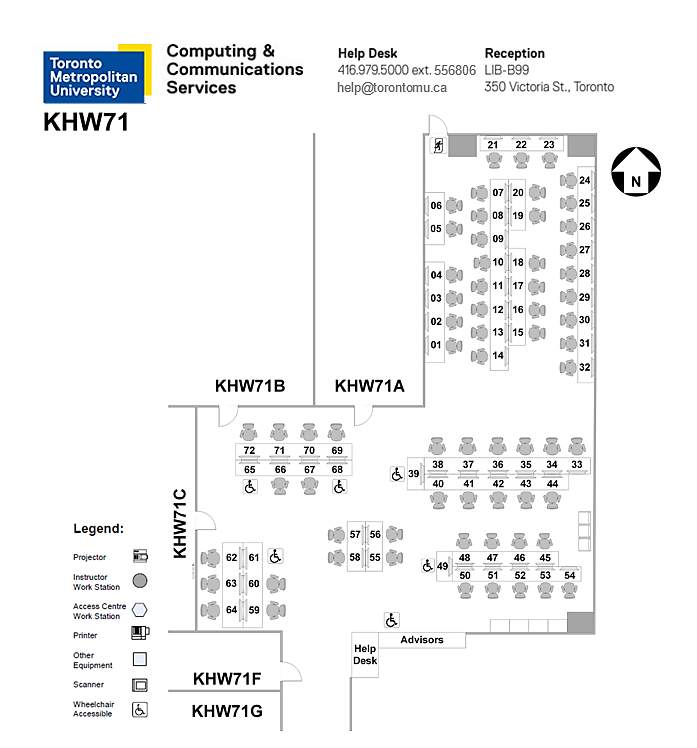 Note: CCS operates the KHW71G (52 seats) computer lab under contract to the Faculty of Community Services. The lab may only be booked for any course in the Faculty of Community Services. Only students and faculty of Schools in the Faculty of Community Services may use this lab; other students will find their accounts are not valid on the workstations in KHW71G.