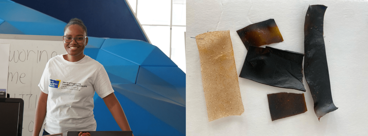 As a student of Toronto Metropolitan University’s Master of Engineering Innovation & Entrepreneurship (MEIE) program, Syddonna was equipped for success. Through MEIE, she was able to leverage mentors, entrepreneurial curriculum and incubation at Innovation Boost Zone to officially launch Foobric; a fashion startup that turns potatoes into vegan leather.