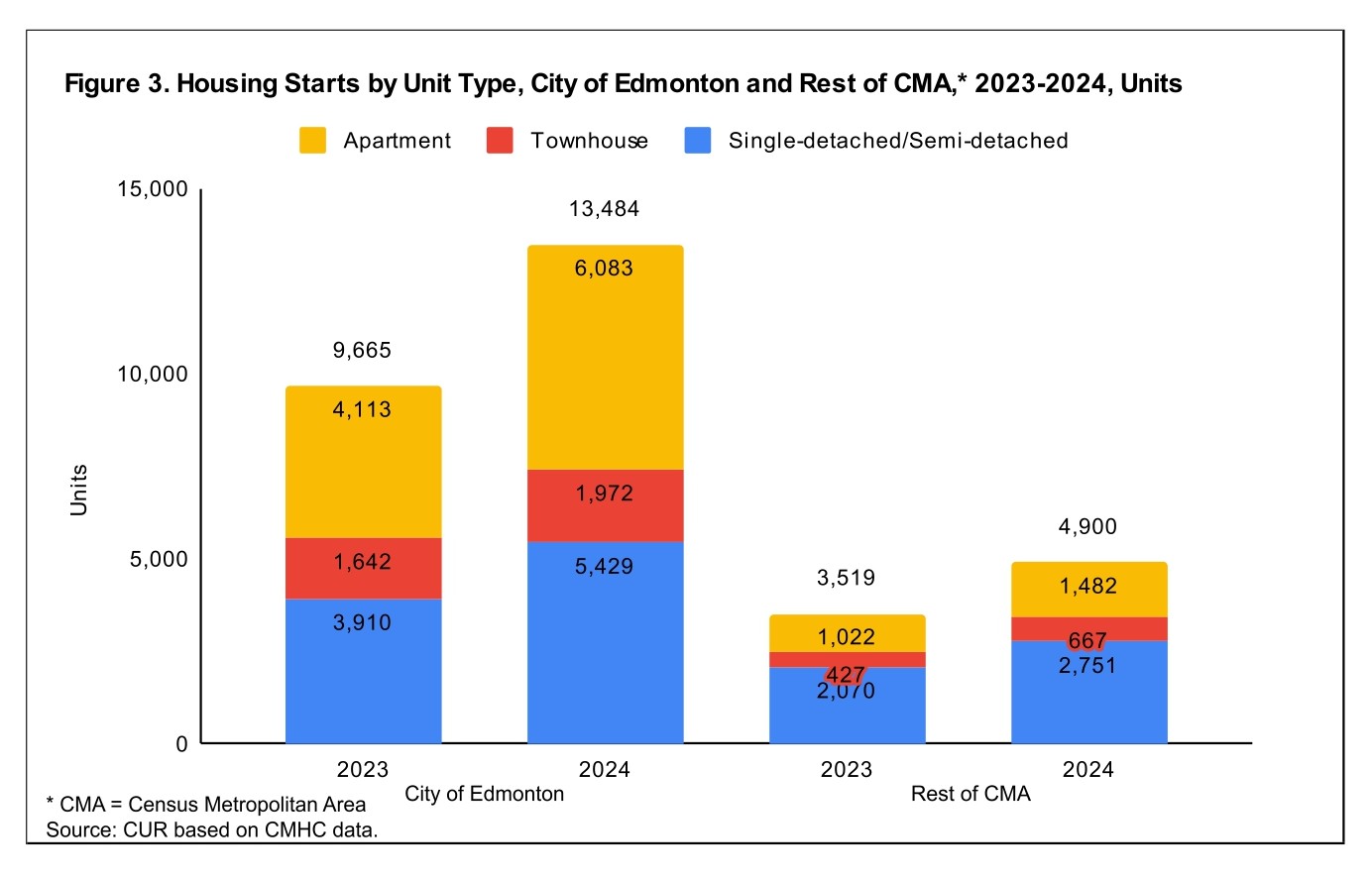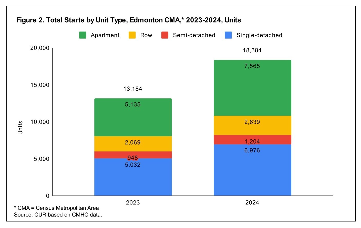 The 2024 surge in Metro Edmonton starts was due to apartments and single-detached houses