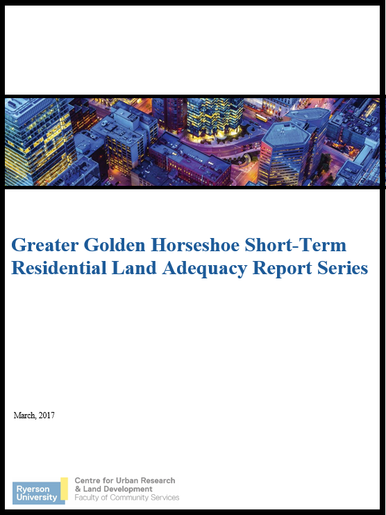 The Centre for Urban Research and Land Development (CUR) is undertaking an assessment of the short-term supply of land for housing in the Greater Golden Horseshoe (GGH). This GGH Short-Term Residential Land Adequacy Report Series will be assessing the short-term land supply for individual municipalities. This work builds on a prior CUR publication, (PDF file) Why There is a Shortage of New Ground-Related Housing in the GTA (June 2015).
