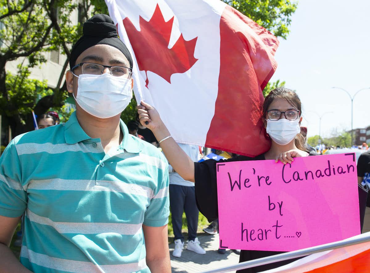A person holds up a sign at a pro-immigration rally in Montréal in May 2021. THE CANADIAN PRESS/Graham Hughes