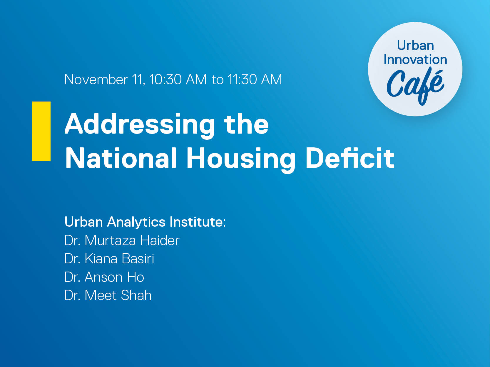 In this session led by Dr. Murtaza Haider (Professor, Real Estate Management, TRSM), we will discuss UAI’s comprehensive review of the reasons behind the accumulation of a national housing deficit approaching four million dwelling units, and the changes in policy, strategies and designs needed to build housing at scale, with Assistant Professors in Real Estate Management Dr. Kiana Basiri and Dr. Anson Ho, and research associate Meet Shah.