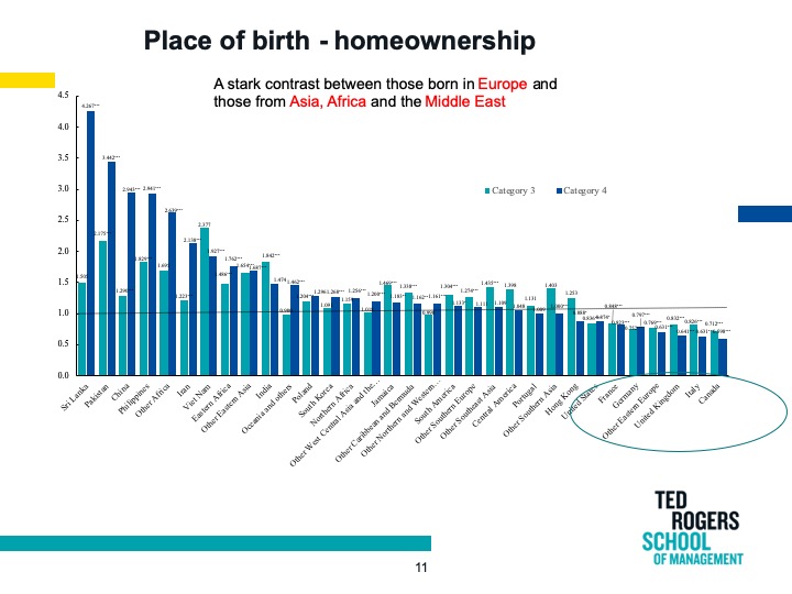 Graphic from Dr. Vik Singh's Feb. 11, 2021 presentation, demonstrating data comparing homeownership rates among immigrant groups in Canada.