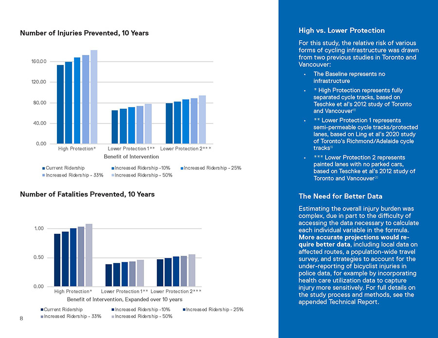- The availability of safer cycling infrastructure throughout the COVID-19 pandemic could have a "safety in numbers" effect, attracting higher cycling volumes and preventing even more injuries
