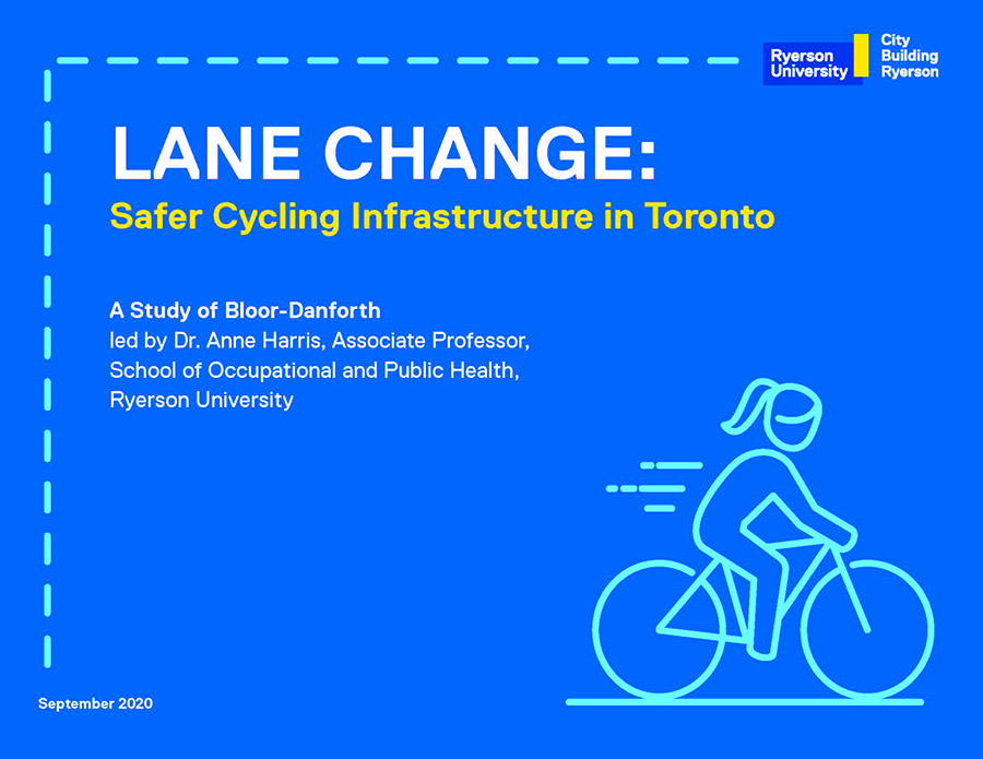 Lane Change summarizes the research findings and highlights key takeaways and policy action items. The report emphasizes the public health benefits of dedicated and protected cycling infrastructure and equips community members with context, evidence and tools to support dialogue, understand neighbourhood impacts and advocate for safer cycling infrastructure across the city.