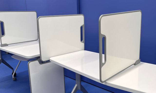Each student table comes with two dry-erase buddy boards that can be removed and used by students around the classroom or used as table dividers to allow for privacy. The buddy boards allow for increased student collaboration and flexibility within the classroom.