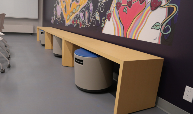 Bench seating provides students and instructors with flexibility and choice of seating. The benches can be used with student tables for classwork, to set up panel discussions, or as an alternative seating choice during student group work. The benches are moveable.