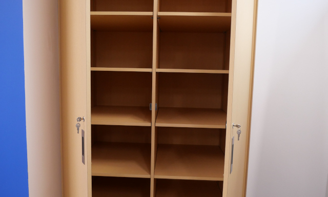A lockable supply cabinet allows for the storage of Active Learning Classroom supplies and materials.