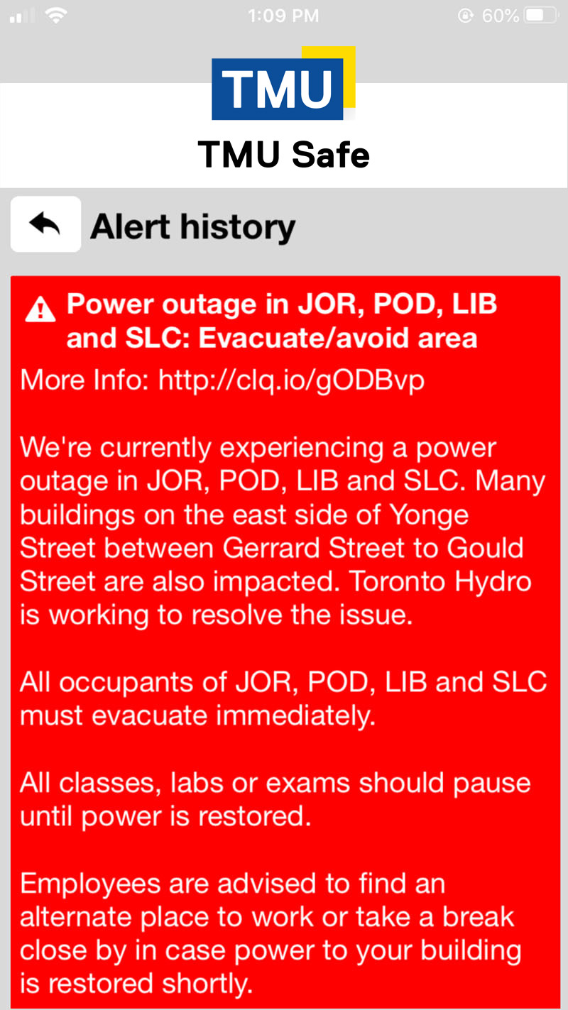 TMU Safe alerts provide the latest and most up-to-date information. When an issue has been resolved, we will send an alert stating the issue is all clear.