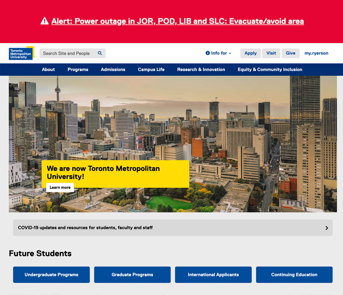 Note: TMU-managed websites that are not on the torontomu.ca domain will not display alerts with the exception of the Chang School.
