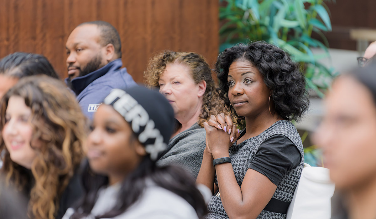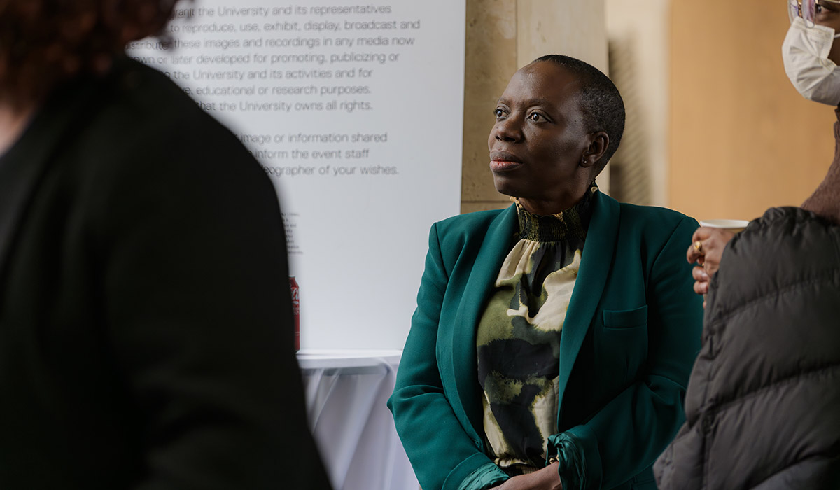 Black faculty, Annette Bailey, looking into the distance at the Alan Shepard Equity, Diversity and Inclusion Awards.