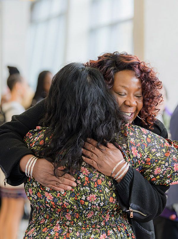 Pamela Appelt shaking hands with Black TMU faculty and staff at the Viola Desmond Awards (2020).