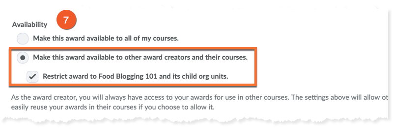 Note: Awards are tied to the person that initially created them. Unfortunately, this means that only that person can modify the award afterward, regardless of the ownership of the course shell itself.