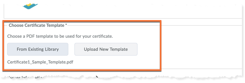 If you chose to create a certificate award (as opposed to a badge), you will need to upload a PDF certificate template.