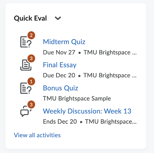 Note: Members of the course without the ability to grade (like students) do not see the Quick Eval widget on their course homepage.