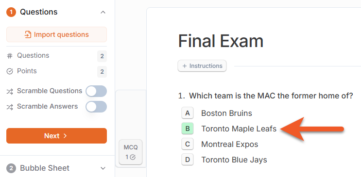 When you input the answers for each question, changes are immediately reflected on the bubble sheet previewed on the right.