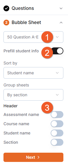 Customize the bubble sheet students will use to answer the questions.