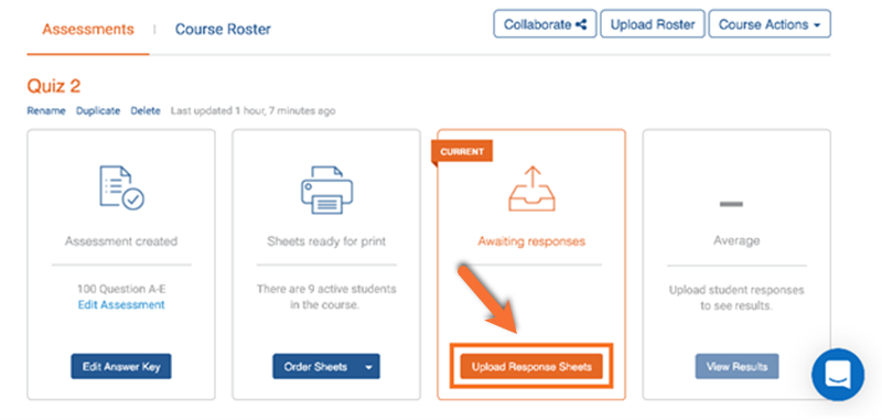If you have access to a regular scanner, you can scan the response sheets in any order and upload the PDF to your Akindi Dashboard in the Upload Response Sheets option.