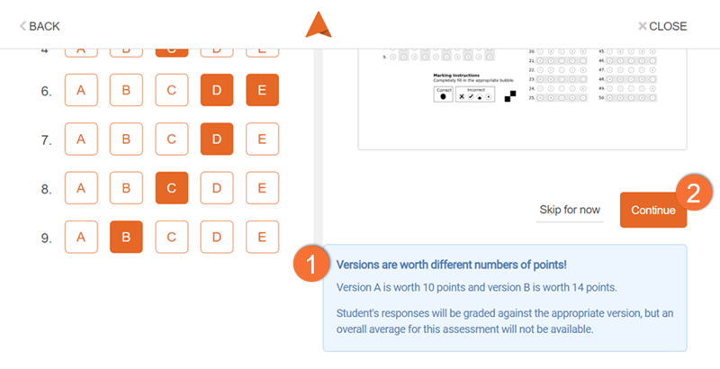 - If you have multiple versions of your test and they are worth different amounts of points, you will get a warning message.