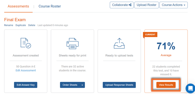 Once the assessment is scanned, you can access grading from the Akindi Dashboard by selecting View Results.
