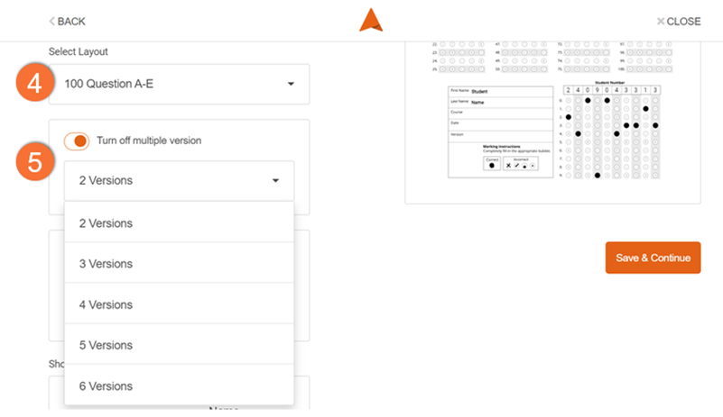 5. Turn on/off multiple versions: Allows you to select the number of versions of this test you would like to create, up to 6 versions.