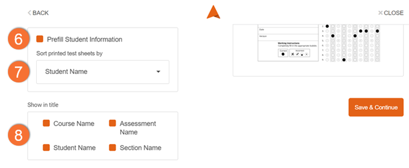 6. Prefill Student Information: Add each student’s name and student ID number to their response sheet before it is printed. IIf selected, each student will need to be provided with their personalized response sheet at the time of the assessment.