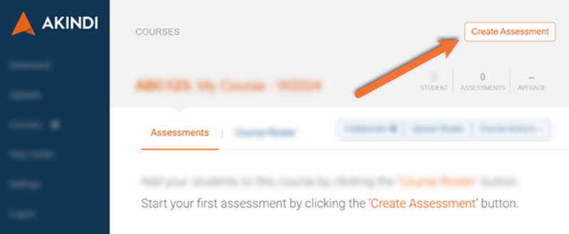 Select the Create Assessment button in the top right corner.