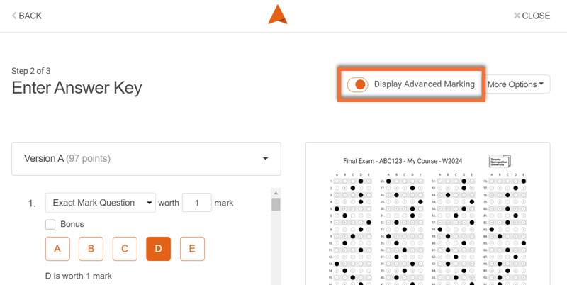 Advanced marking options are beneficial if your assessment has bonus questions, questions worth different point values, or questions with multiple answers.