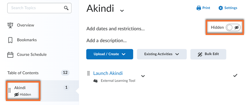 Access the tool by clicking on the Launch Akindi link in your module.