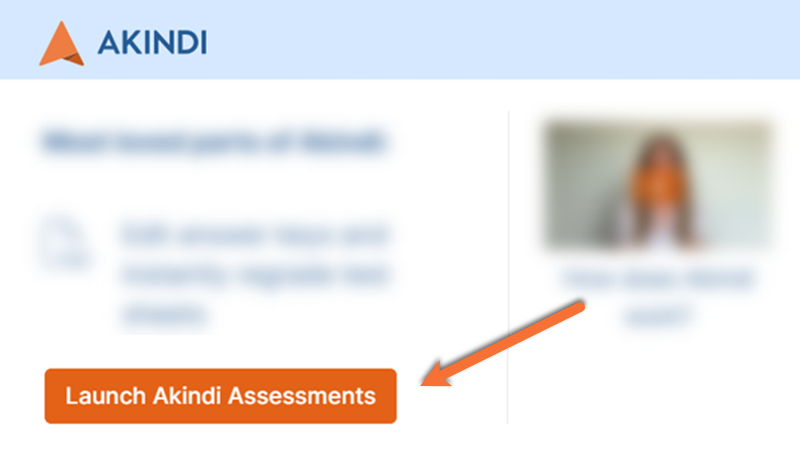 Click on the big orange Launch Akindi Assessments button in the bottom left of the new window.