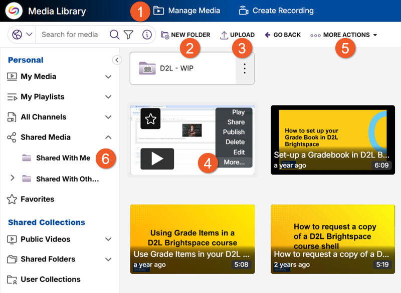 Users may publish content from My Media to several Media Channels, including Public Videos and their own Course or Organization Channel that is created through the D2L Brightspace integration.