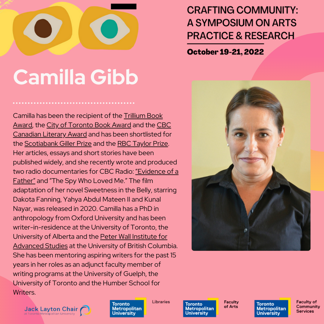 Camilla Gibb is the author of five internationally acclaimed novels: Mouthing the Words, The Petty Details of So-and-so’s Life, Sweetness in the Belly, The Beauty of Humanity Movement, and most recently, The Relatives, as well as a memoir, This Is Happy.