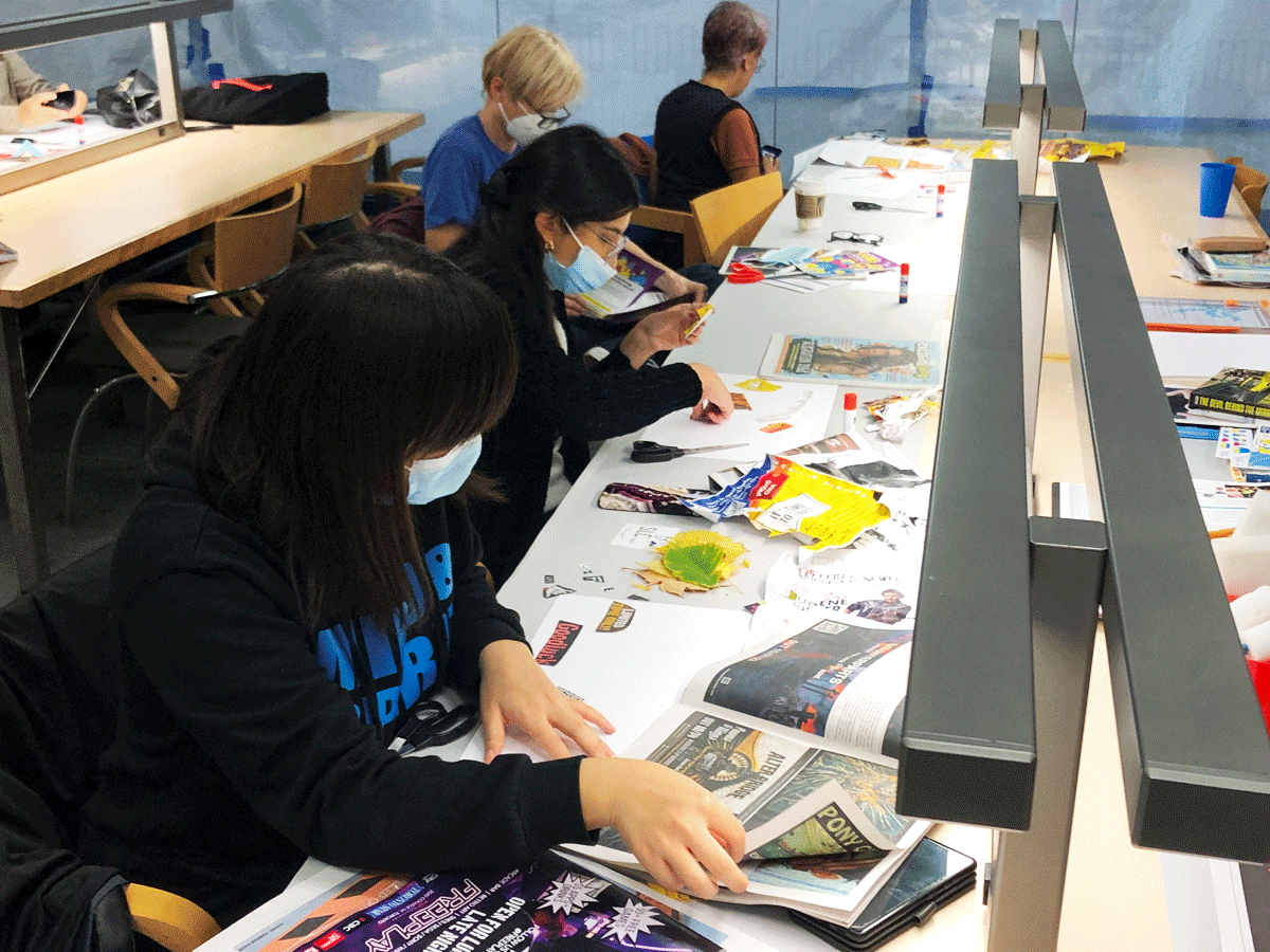 Participants engage through making collage in an approach to thinking about experience, place, subjectivity, identity and social change. Through this process we are picking up the unfinished work of history and speaking to contemporary civic discourse around the personal, the social, economic, and environmental issues. Workshop leaders provide a brief overview of the histories of collage, past collage projects at TMU as well as support the creative process of collage making.