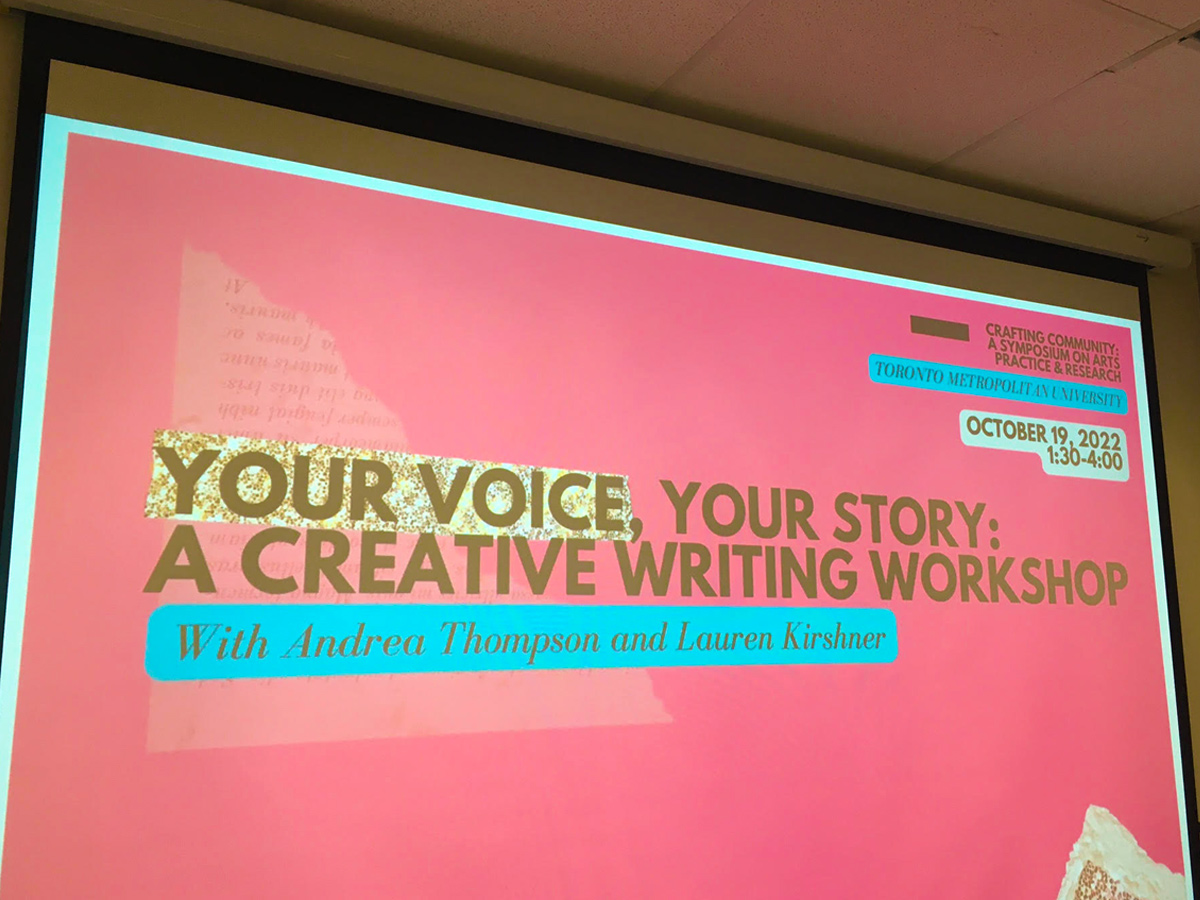 This workshop explores the methods writers use to discover, write and share stories in their most honest and compelling voices. Whether you are trying to write fiction or drawing on experiences from real life to create a spoken word poem, your voice is a key part of your writing and performance that links the reader to your story. In this workshop on voice and writing, participants learn techniques to craft interesting stories and build rapport with their reader – and use their voice to keep audiences rapt. This hands-on workshop involves writing exercises and was facilitated by writers Lauren Kirshner and Andrea Thompson, who draw on their over 30 years of collective experience teaching writing in the community to facilitate this active writing experience.