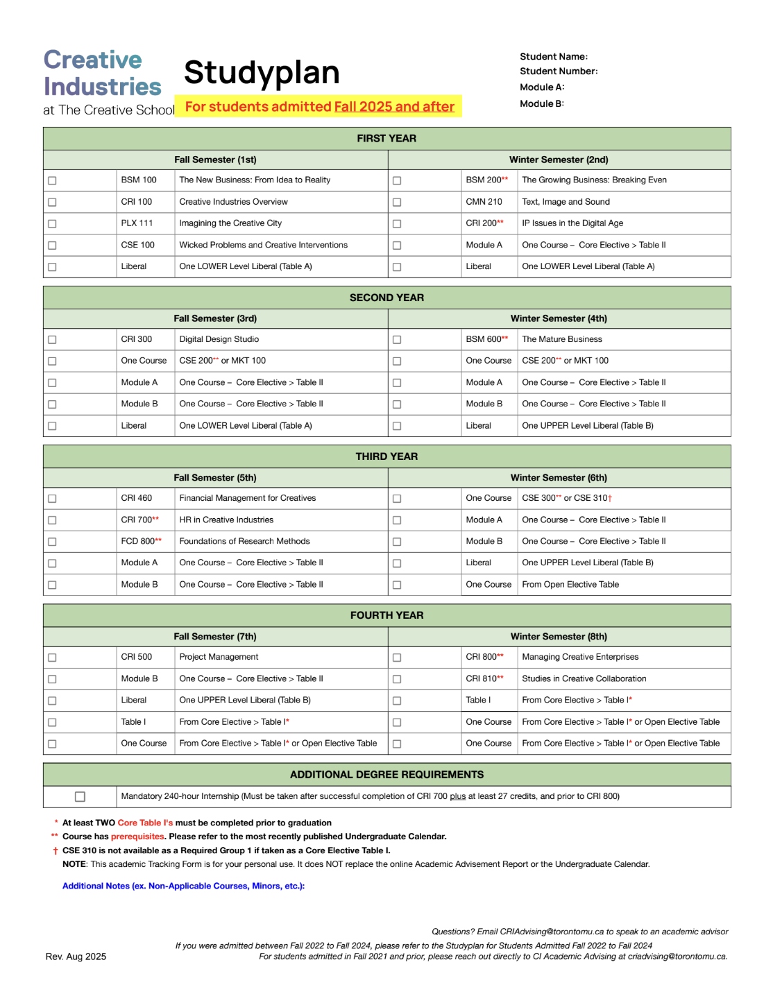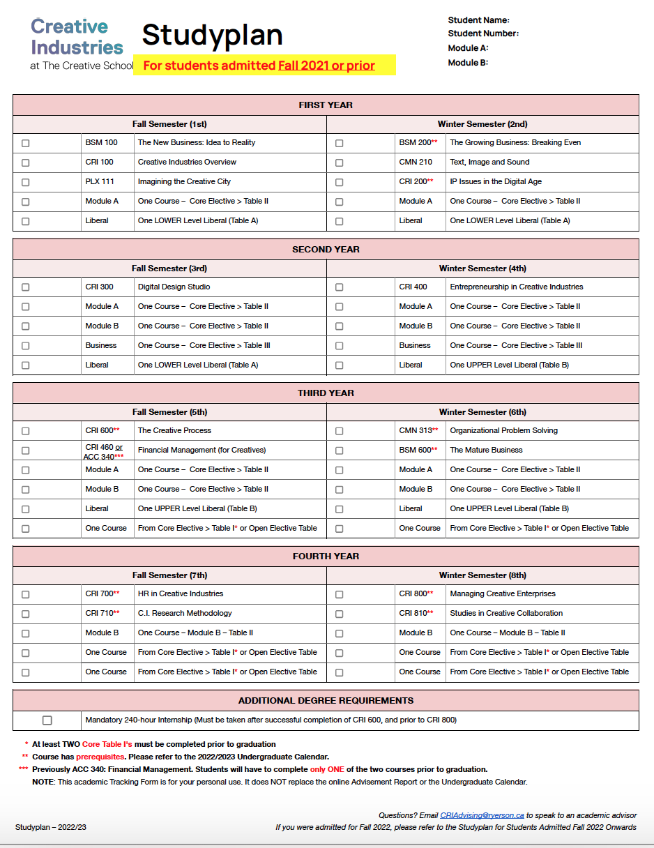 For students admitted Fall 2021 or before, please contact criadvising@torontomu.ca for more information about your degree requirements.