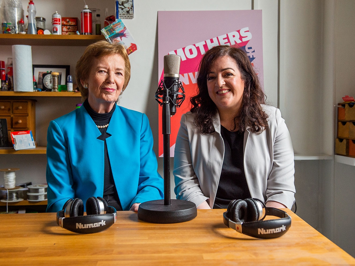 Mary Robinson (left) and Maeve Higgins, hosts of Mothers of Invention podcast.