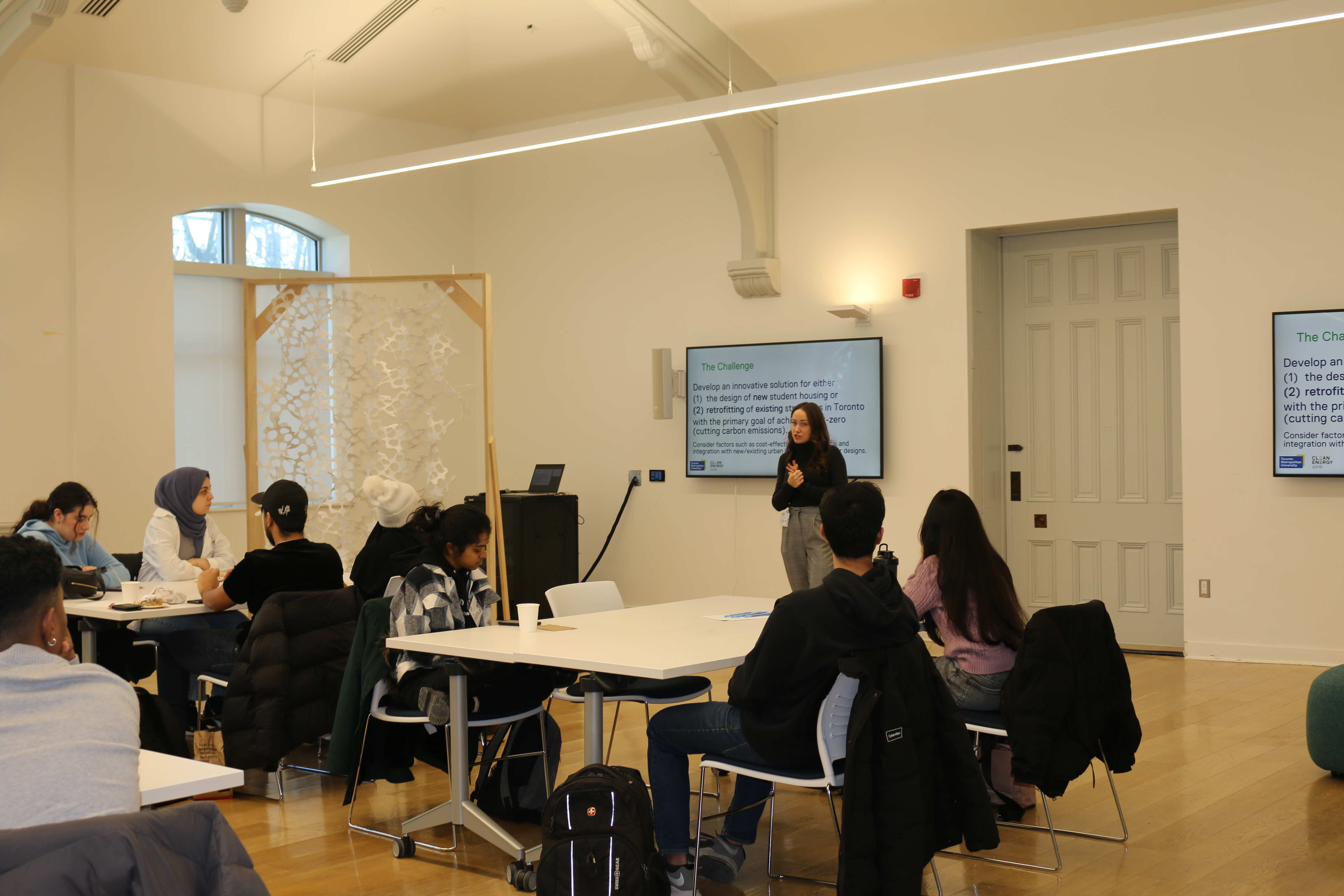 On February 20th and 21st, the Centre for Urban Energy’s Clean Energy Zone hosted 14 eager students from various programs to participate in the Zero Carbon Challenge. The challenge required students to collaborate to design an innovative sustainable solution that addresses the impact of existing structure in helping Toronto achieve its Net Zero goals. The focus was placed on student housing, aiming to redesign spaces to meet sustainable living standards while maintaining comfort for students.