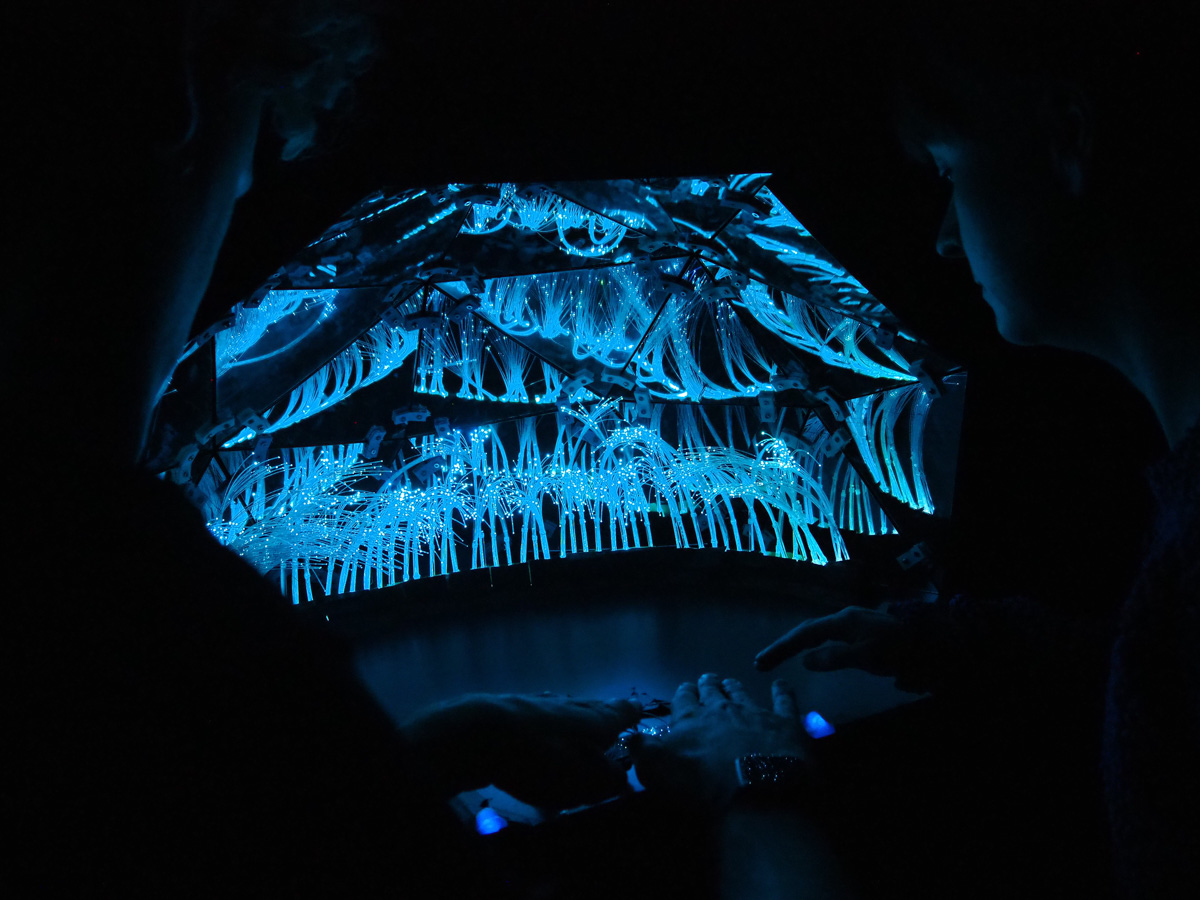 Madeline's motivation behind Biolumina is twofold. Firstly, it seeks to empower users to explore their intrinsic connection with the natural world through an interactive and mesmerizing encounter. Secondly, it serves as an exploration of Madeline’s deep-rooted fascination with bioluminescence, nurtured by childhood experiences alongside the ocean. By granting control to the observer, the installation transcends into a shared experience, blurring the boundaries between observer and observed. Biolumina, functioning as a controlled specimen, prompts contemplation on the relationship between human agency and the captivating beauty inherent in the natural phenomena it emulates.