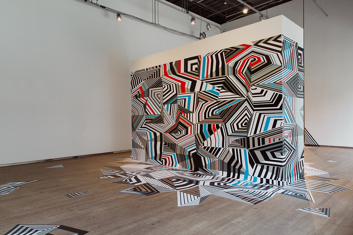 Dazzle explores the computational development of a Delaunay’s triangulated surface and how its complex geometry can be projected onto a flat plan. As a result, the 2d pattern challenges our perception of volume through shape and line. The dazzle pattern, used in WW1 to visually camouflage warships, is applied to the flat design to disrupt further how the viewer perceived surfaces and interior volumes. Dazzle was exhibited at the Design Exchange: Canada’s Design Museum.