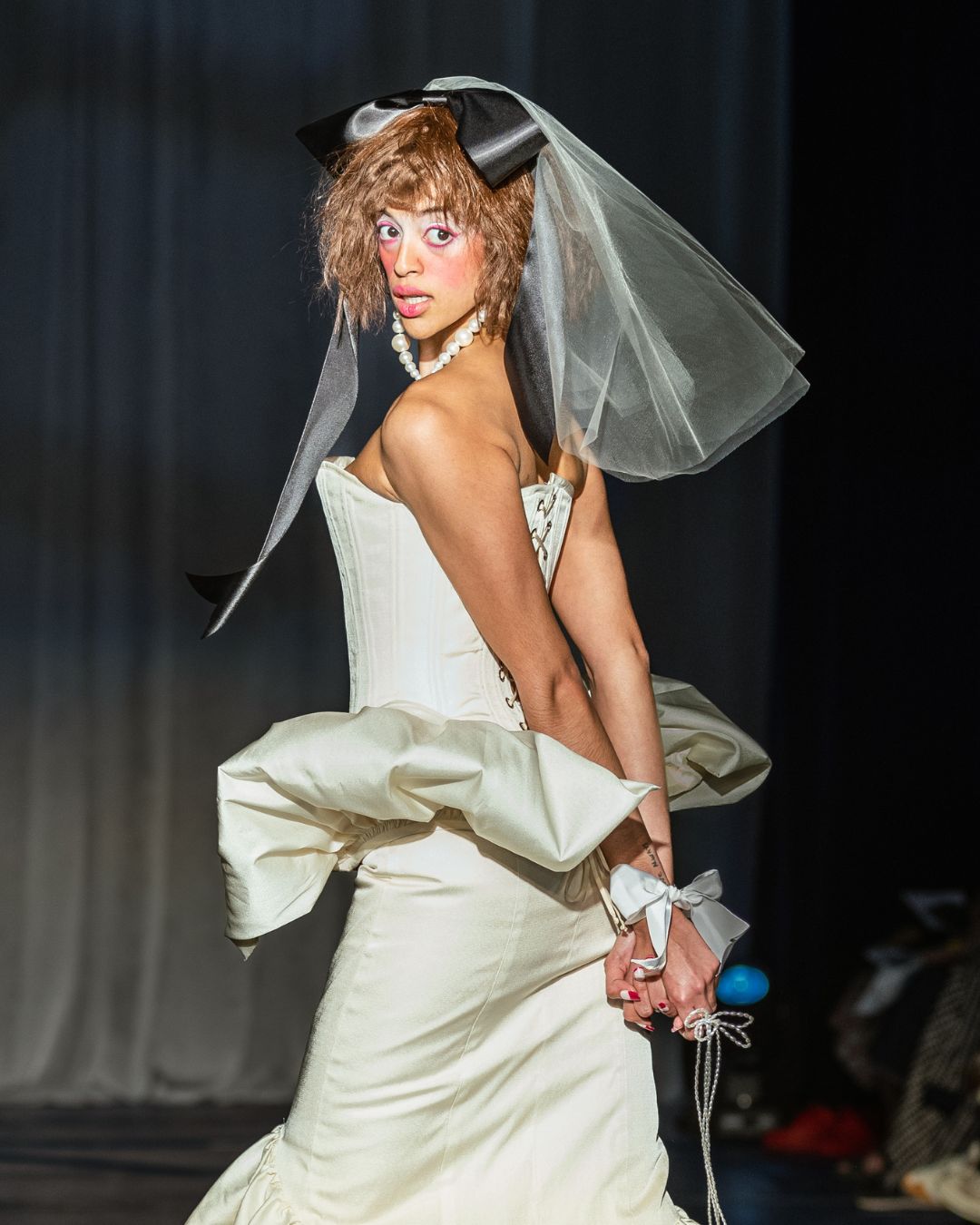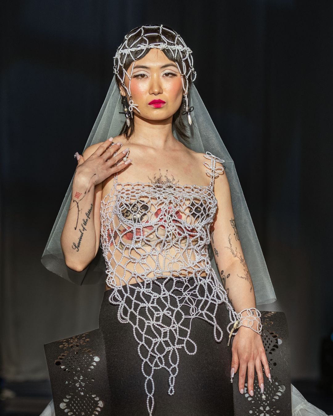 Fall of Doll is a five piece fashion collection that seeks to unravel the performance of femininity through auto-ethnographic and practice based research. In constructing textiles, garments, and adornment that aim to hyperbolize, shroud, and/or protect, Delfina engages in the act of unraveling the performance of femininity.