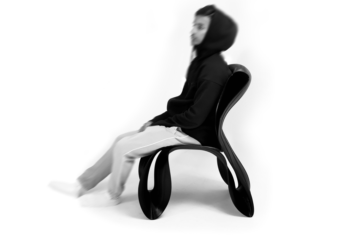 The light chair is an exploration of 3D printing with the robotic arm. A custom 2.85mm spool fed 3D printing end-effector was developed for the purpose of printing large scale furniture. The chair is one continuous print that carefully plans its path using a slicing algorithm. The thickest part of the chair measures 2.5mm and to provide support a series of ribs were printed into the chair. Post printing, the ribs are filled with carbon fiber stands and epoxy resin.