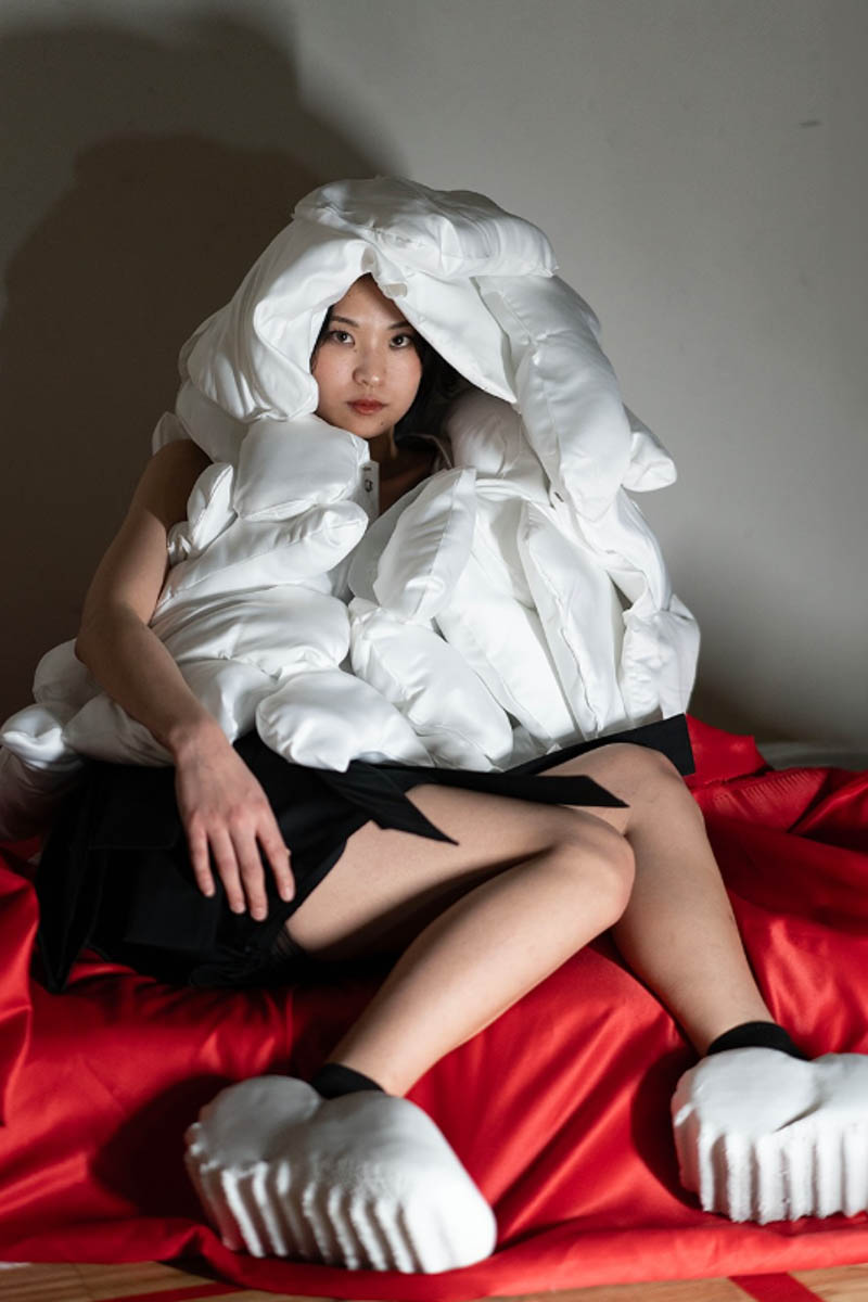 The main inspiration for this collection comes from AKIRA, a film about Tetsuo, a boy who gains psychic abilities after an encounter with a secret government test subject. As his power grows, he becomes egotistical and destructive, ultimately losing control. I see parallels between the girl at the heart of my 2021 collection, Tetsuo and myself—we are all navigating life with newfound power and uncertainty.
