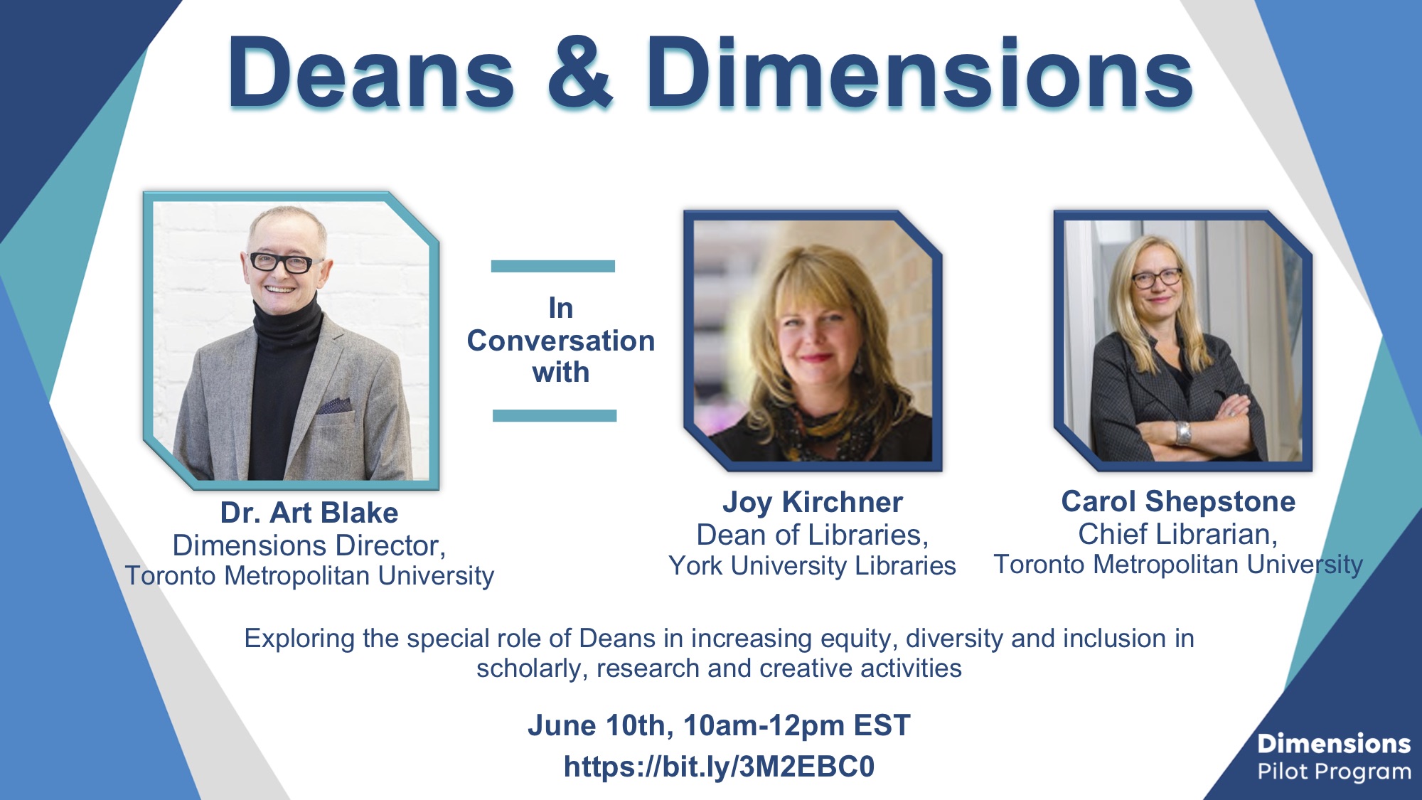 On June 10, join Dimensions Director Art Blake for a virtual conversation with Toronto Metropolitan University Chief Librarian Carol Shepstone & York University Dean of Libraries Joy Kirchneron on these complex questions and more.