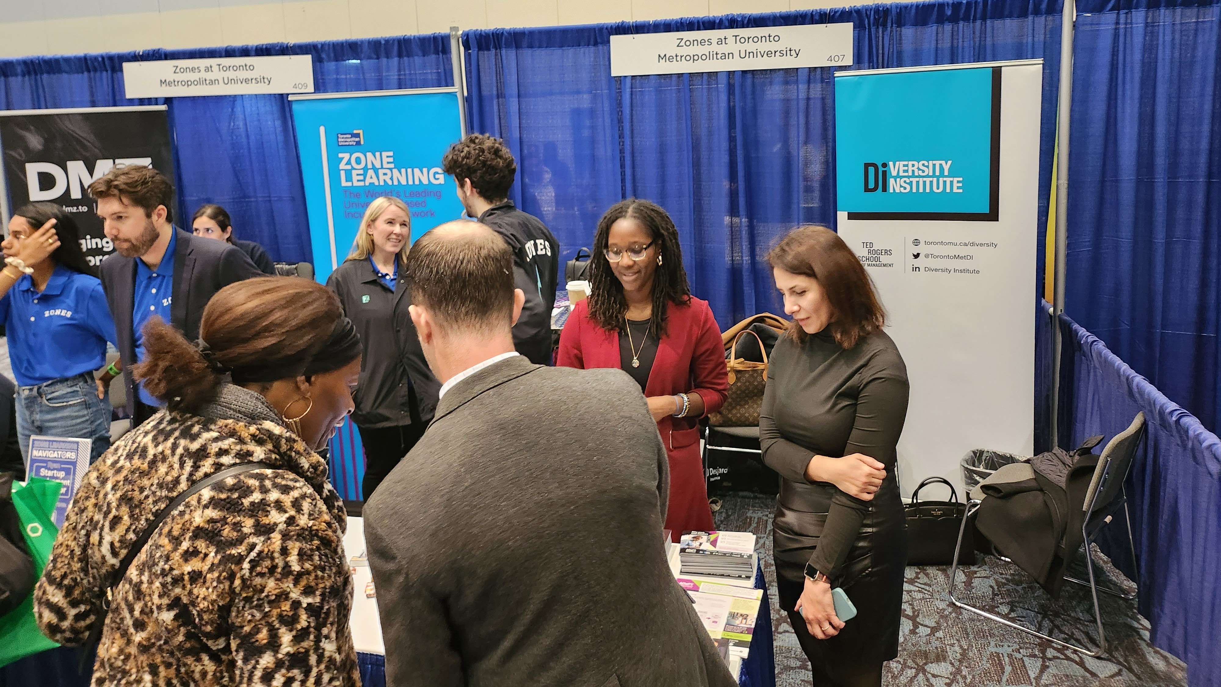 Diversity Institute (DI) presented its research and programs alongside the Toronto Metropolitan University’s Zone Learning and the DMZ. Many business owners, entrepreneurs and researchers visited DI’s booth to learn more about its programs and expressed their interest in working with DI.