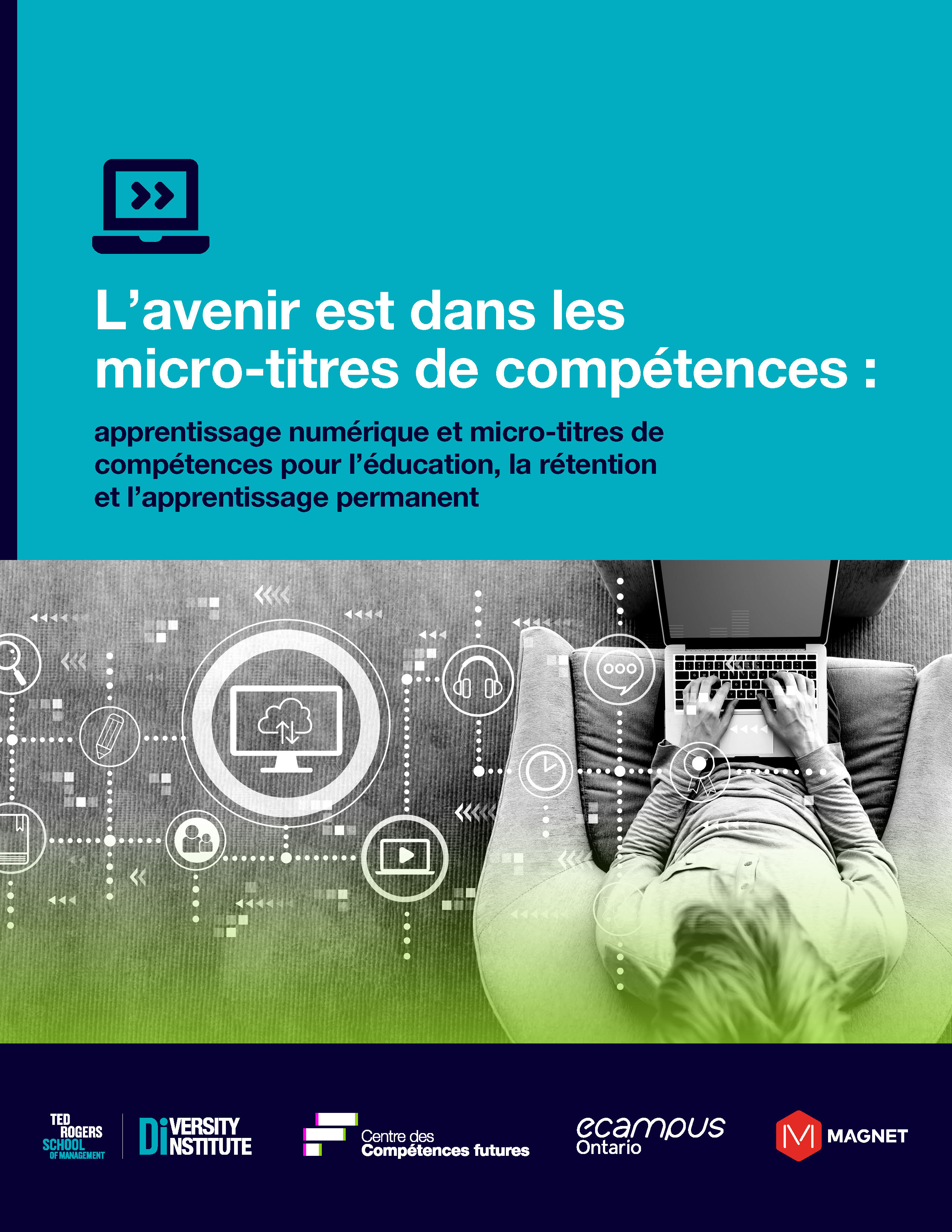 Ce rapport, qui s’inscrit dans le cadre d’une collaboration plus large entre eCampusOntario, le Diversity Institue, Magnet et le Centre des Compétences futures, met l’accent sur ces projets pilotes afin de mettre en lumière ce qui fonctionne, ce qui manque et ce que l’avenir nous réserve au chapitre des micro-titres de compétences au Canada. Nous avons recueilli ces expériences en utilisant une approche mixte : 1) un sondage auprès des responsables des projets pilotes de microtitres de compétences d’eCampusOntario, et 2) une série de groupes de discussion comprenant des responsables de projets pilotes et des partenaires communautaires et employeurs participant à l’un des 36 projets pilotes. Cette approche a été conçue pour rendre compte des expériences sur le terrain des personnes engagées dans le programme pilote et pour explorer leurs perceptions et leurs croyances sur l’avenir des micro-titres de compétences en Ontario.